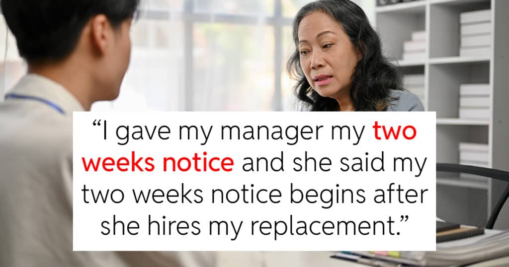 Work Employee Gives 2 Week’s Notice But Entitled Manager Says The 2 Weeks Doesn’t Start Until She Finds A Replacement ByMike January 9, 2026January 9, 2026
