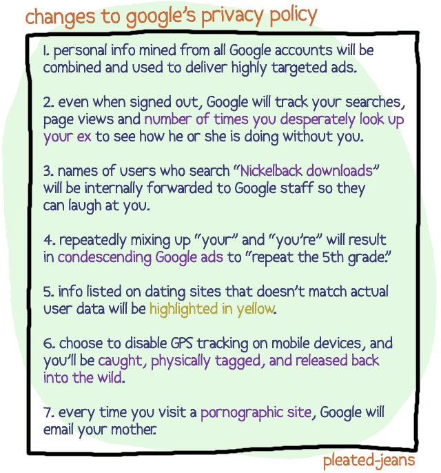 You may or may not already know that Google is making major changes to their privacy policy that will go into effect on March 1st. You could read a really long article to learn how this might affect you, or you could just look at my short and sweet version below.
