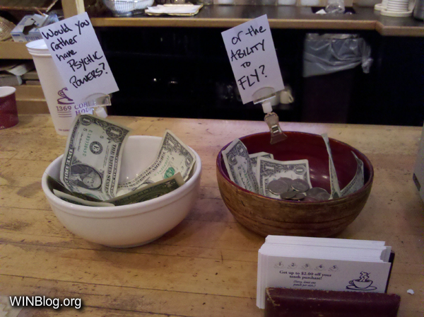 Which would you rather see? A funny tip jar put out by an employee or a funny tip left by a customer? Well, good thing you don’t have to decide…because plenty of both of them are included in this post!