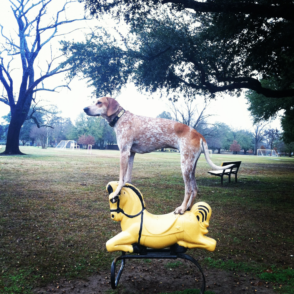 Maddie on Things is a blog that posts pictures of Maddie the Coonhound standing on various things. Simplicity at its best… (found via biotv).