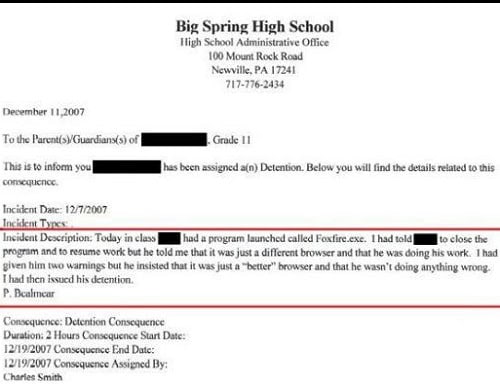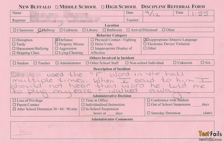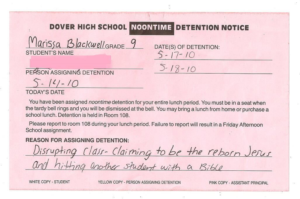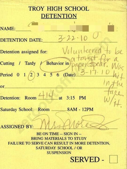 Pic Dumps 16 Funny Detention Slips Add as a preferred source on Google ByJeff Wysaski February 22, 2012February 22, 2012 I feel like most of these reasons for detention would be highly unlikely to occur prior to the dawn of the World Wide Web. So, thank you, Internet! via via via via via via via via via via via via via via via via Previously: 18 Funny Youtube Comments 16 Funny Test Answers <–Back to Home Page