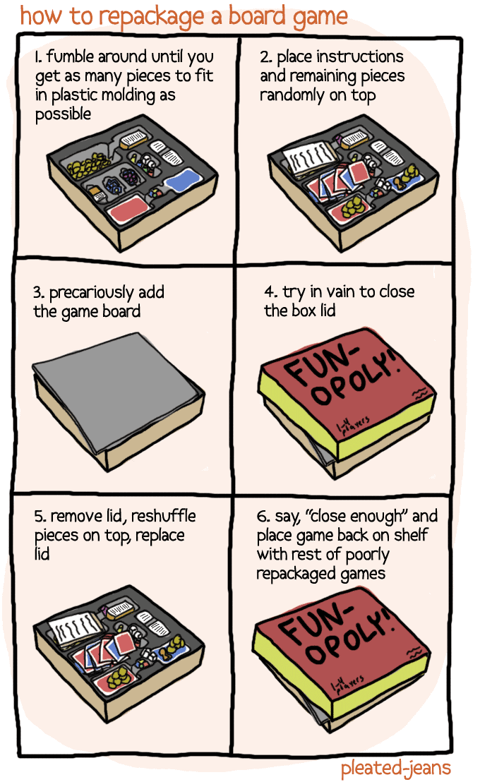 Originals How to Repackage a Board Game Add as a preferred source on Google ByJeff Wysaski March 13, 2012March 13, 2012 You may also like: How To Change A Water Cooler The 6 Stages of Taking a Dump in Public