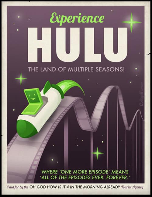 Want all the excitement of a vacation, but don’t have the energy to leave your couch? If so, then these travel posters by Caldwell Tanner are for you…