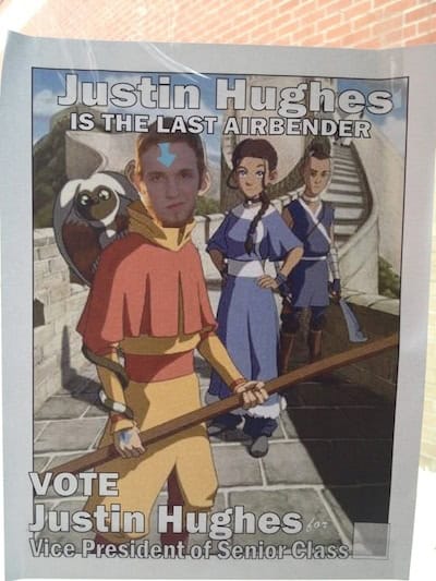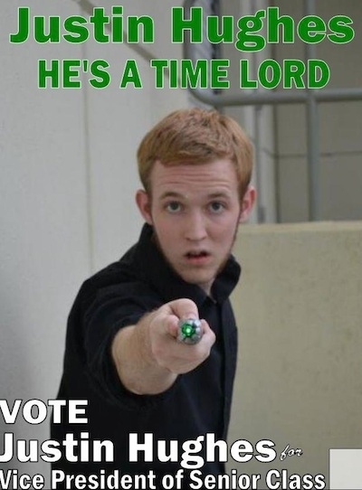 If Justin Hughes doesn’t win his student election with this series of posters, then there is something horribly wrong with the students in his class… (via Buzzfeed)
