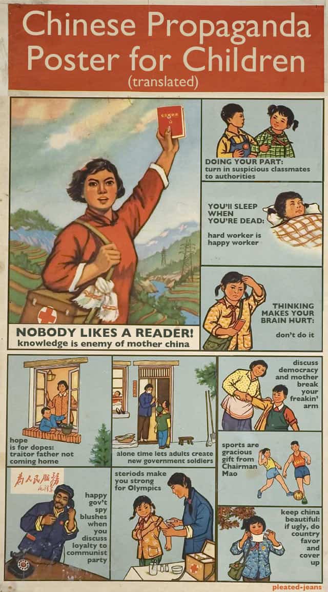 Originals Vintage Chinese Propaganda Poster for Children (Translated) Add as a preferred source on Google ByJeff Wysaski April 9, 2012April 9, 2012 My Chinese is a little rusty, but I’m pretty sure these translations are 100 percent accurate… You may also like: Guide to Gang Signs Basketball Referee Symbols