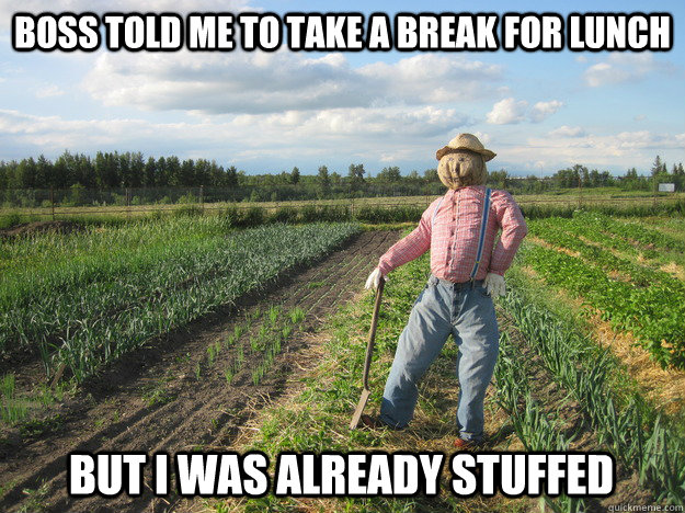 Pic Dumps Best of the Scarecrow Farmer Meme (18 Pics) ByJeff Wysaski May 14, 2012April 26, 2020 This scarecrow loves two things: farming and puns. (via reddit / quickmeme) Previously: Best of the Baffled Boxer Meme Best of the Lawyer Dog Meme <–Back to Home Page