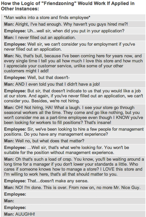 Images How the Logic of “Friendzoning” Would Work If Applied in Other Instances ByJeff Wysaski July 11, 2012July 11, 2012 If you want the position, you’ve got to submit an application… via