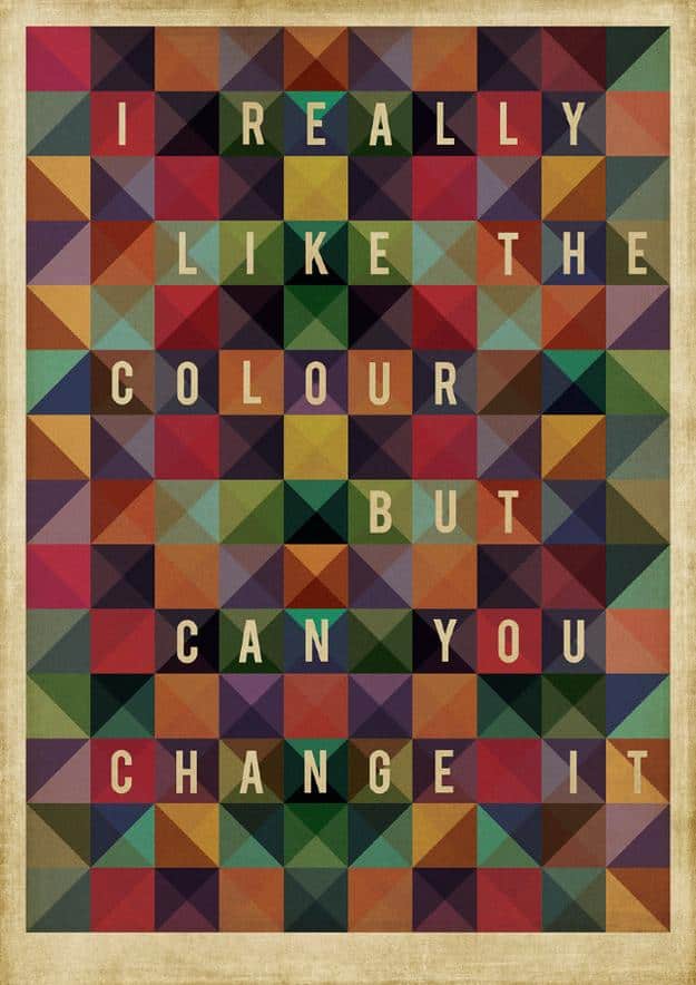 Sharp Suits is an art project that allows professional creatives to vent their frustrations by creating posters based on actual stupid feedback their clients have given them. These pieces were collected into an exhibition in Ireland, with proceeds going to the local Children’s Hospital. [via buzzfeed]