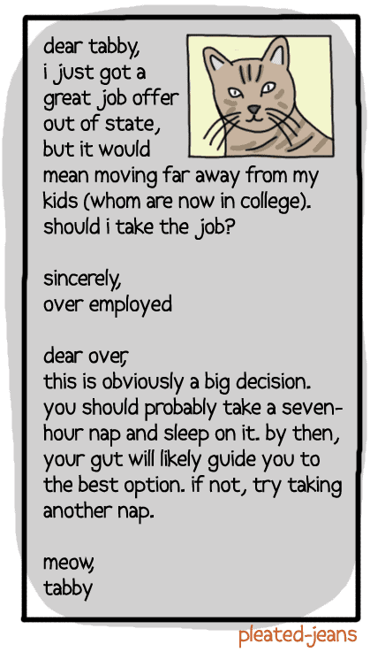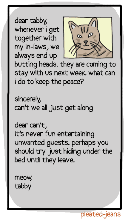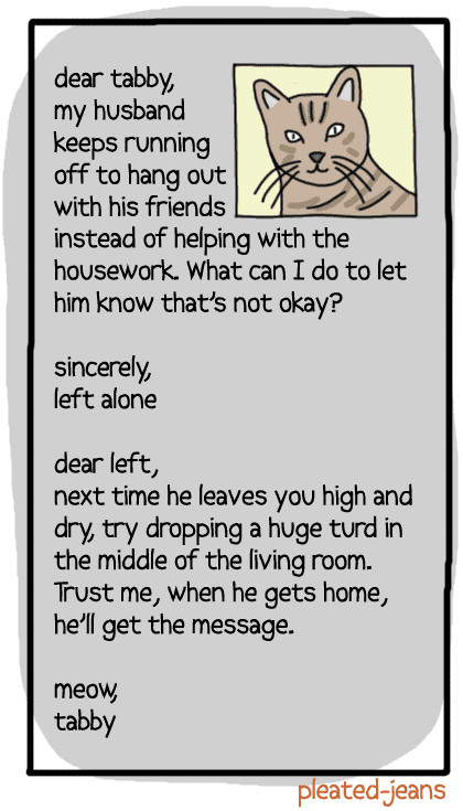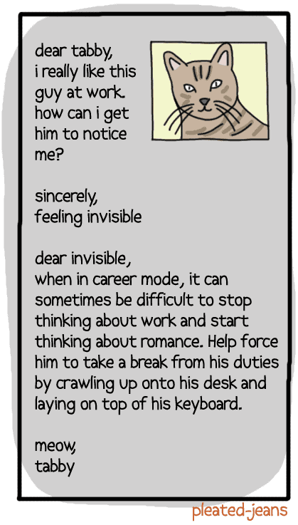 Originals Dear Tabby: Life Advice From a Cat (7 Pics) Add as a preferred source on Google ByJeff Wysaski November 13, 2012 You may also like: New Ads for Outdated Products (6 Pics) Horror Movies for Your Pets (6 Pics)