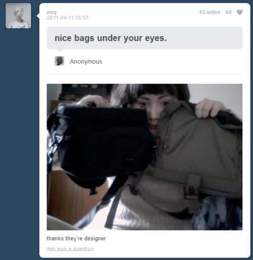 Pic Dumps 15 Funny Comment Replies From People on Tumblr (12.27.12) ByJeff Wysaski December 27, 2012December 27, 2012 The tumblr community is certainly skilled in the art of snark. Here are a few particularly awesome examples… via via via via via via via via via via via via via via via Funny Comment Replies From People on Tumblr: Next Page–>
