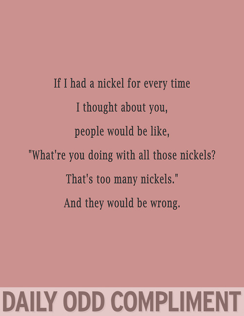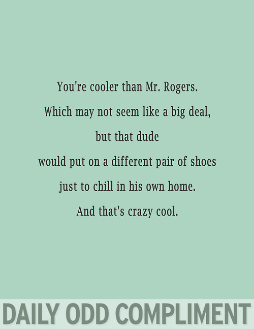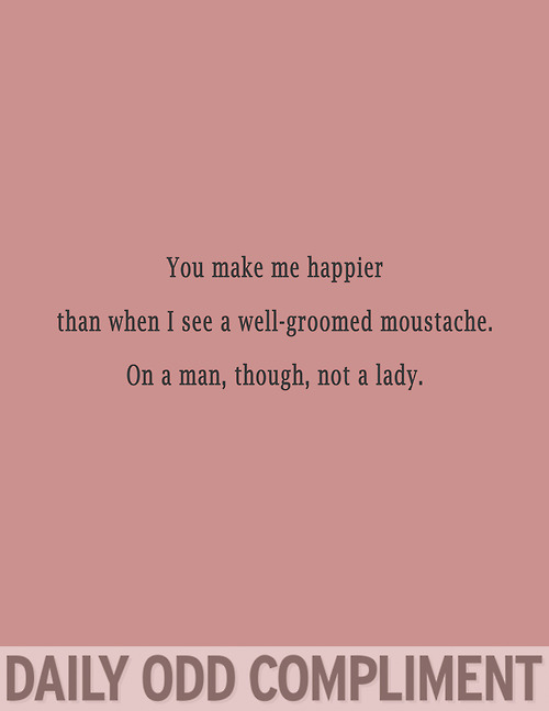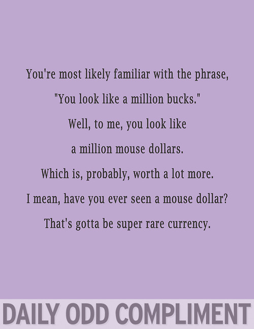 The blog Daily Odd Compliment serves up slightly skewed forms of flattery on a daily basis. Here are a few of the best compliments from the site…
