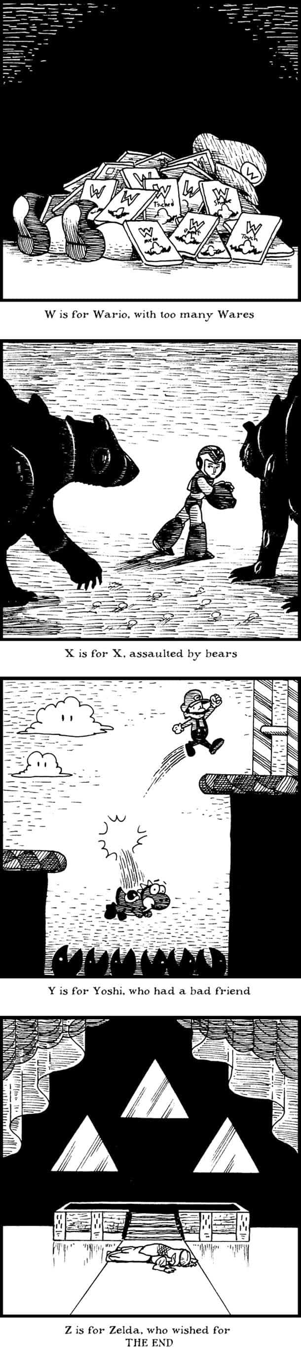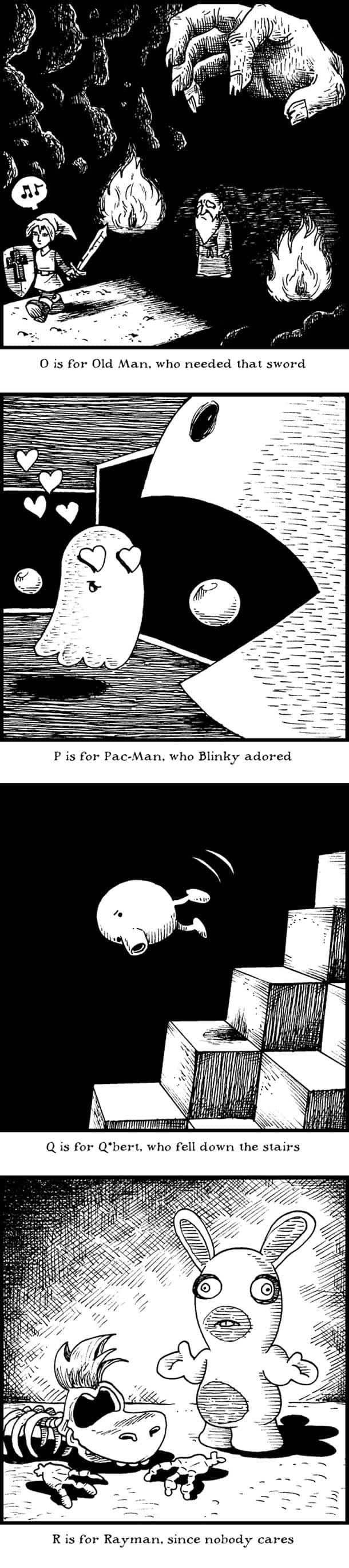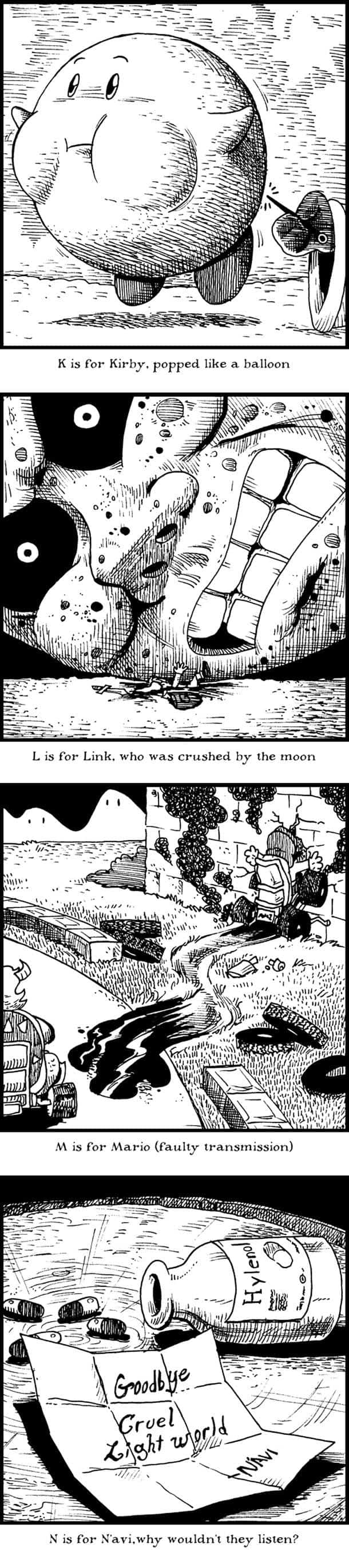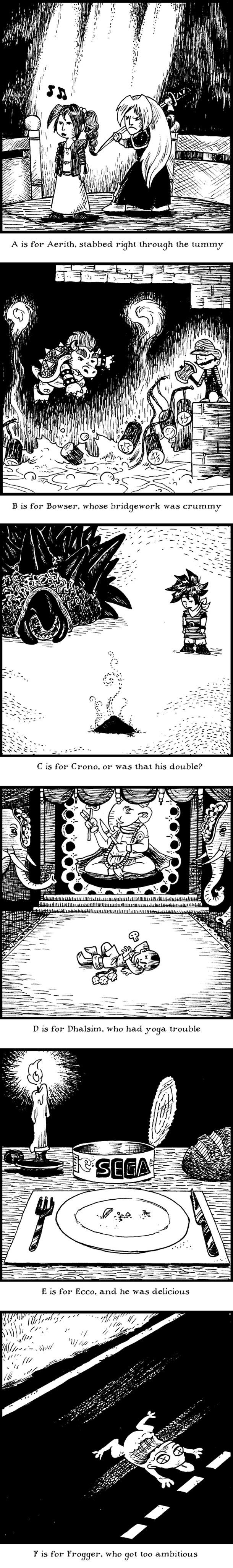 Here’s a pretty awesome collection of “Game Over Tinies” created by Brentalfloss that depict an alphabetic documentation of video game character deaths. [via ufunk]