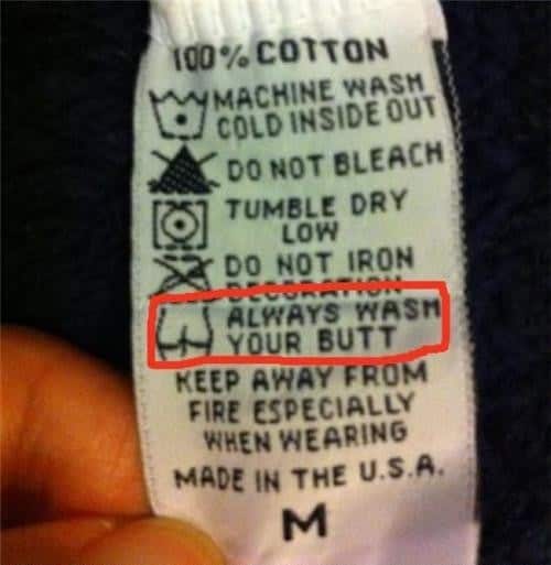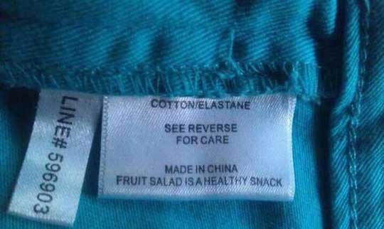 Lists 19 Funny Clothing Tags Add as a preferred source on Google ByJeff Wysaski January 15, 2014January 15, 2014 Whether it’s a clothing manufacturer with a sense of humor or a message that gets lost in translation, these laundry tag instructions are all worth a read… via via via via via via via via via via via via via via via via via via via