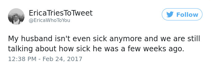 Pic Dumps 17 Posts About Wives Dealing With Their Husbands Inability To Deal With Being Sick ByMike September 28, 2017September 30, 2017 Sick men and the wives you deal with them. As a man who 100% milks it for everything it’s worth when I’m sick, I endorse this post. 1. source 2. source 3. source 4. 5. 6. source 7. 8. source 9. source 10. source 11. 12. source 13. 14. source 15. 16. source 17. via boredpanda
