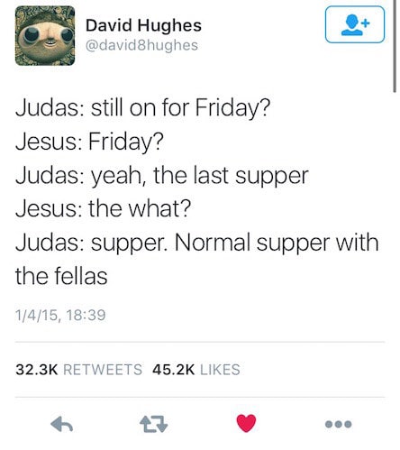 Jesus: "I forgive you."— Mike Primavera (@primawesome) May 15, 2012