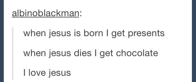 Me: "Oh, it's you. Sorry, Jesus."