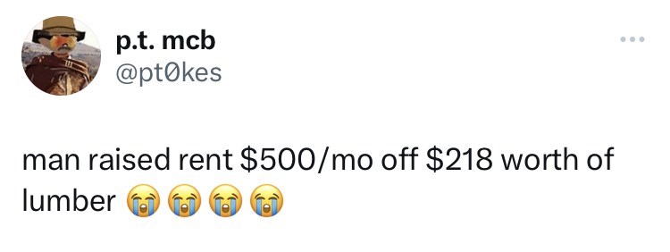 Recently, one landlord, @sweatystartup, took to the internet to brag about how much of a capitalist genius he is.