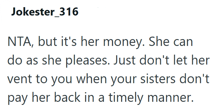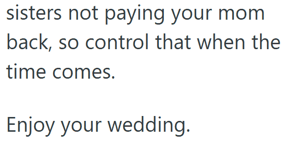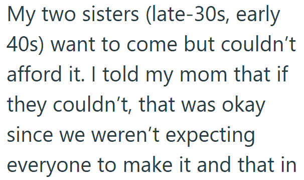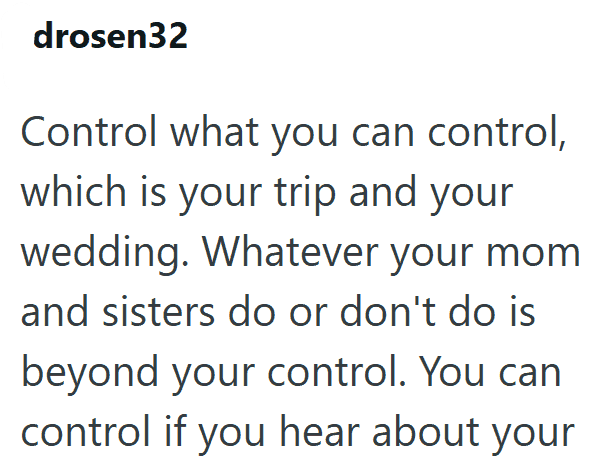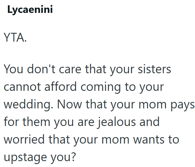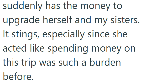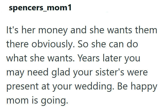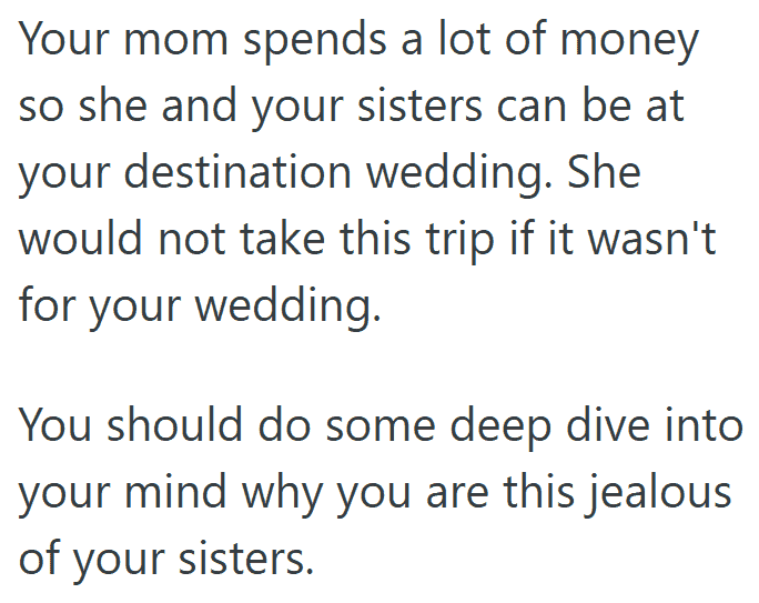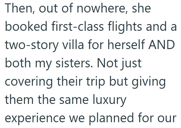 1. AITA for Being Upset That My Mom Paid for My Sisters’ Luxury Trip but Told Me to Just Have a Courthouse Wedding?