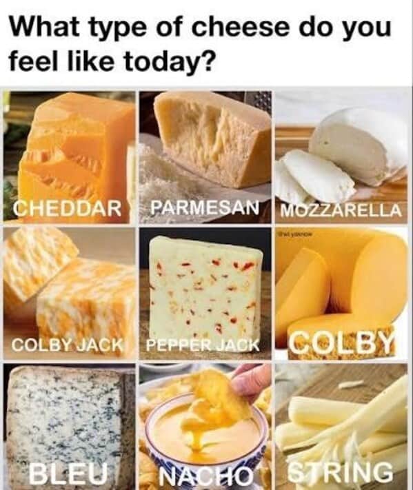 Memes 25 Funny Cheese Memes For A Gouda Laugh ByNate September 30, 2025 Some people say money can’t buy happiness, but it can buy cheese, which is basically the same thing. And when you mix that love with internet humor? You get memes that are gouda enough to make anyone smile. 1. 2. 3. 4. 5. 6. 7. 8. 9. 10. 11. 12. 13. 14. 15. 16. 17. 18. 19. 20. 21. 22. 23. 24. 25.