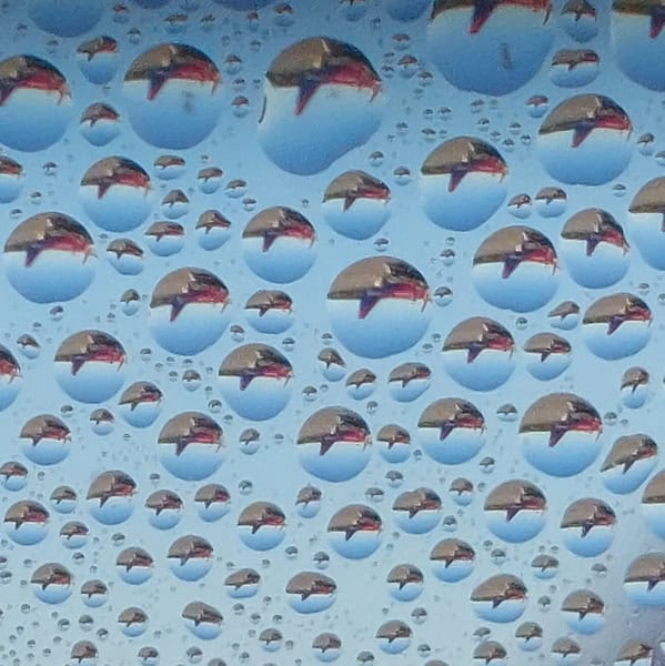25. “Water droplets on a plane window”