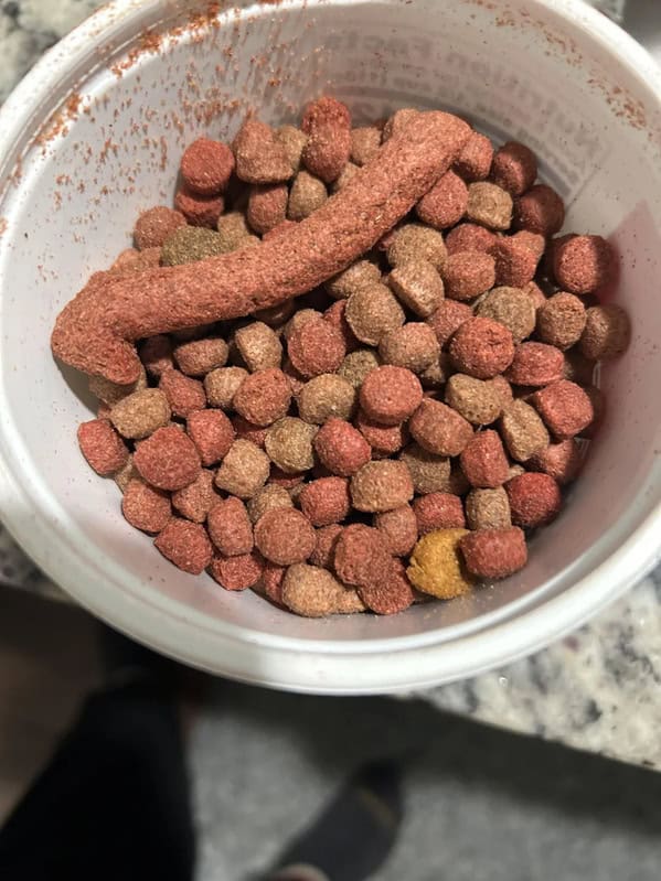 12. “Was feeding my dogs and found a long uncut piece in it.”