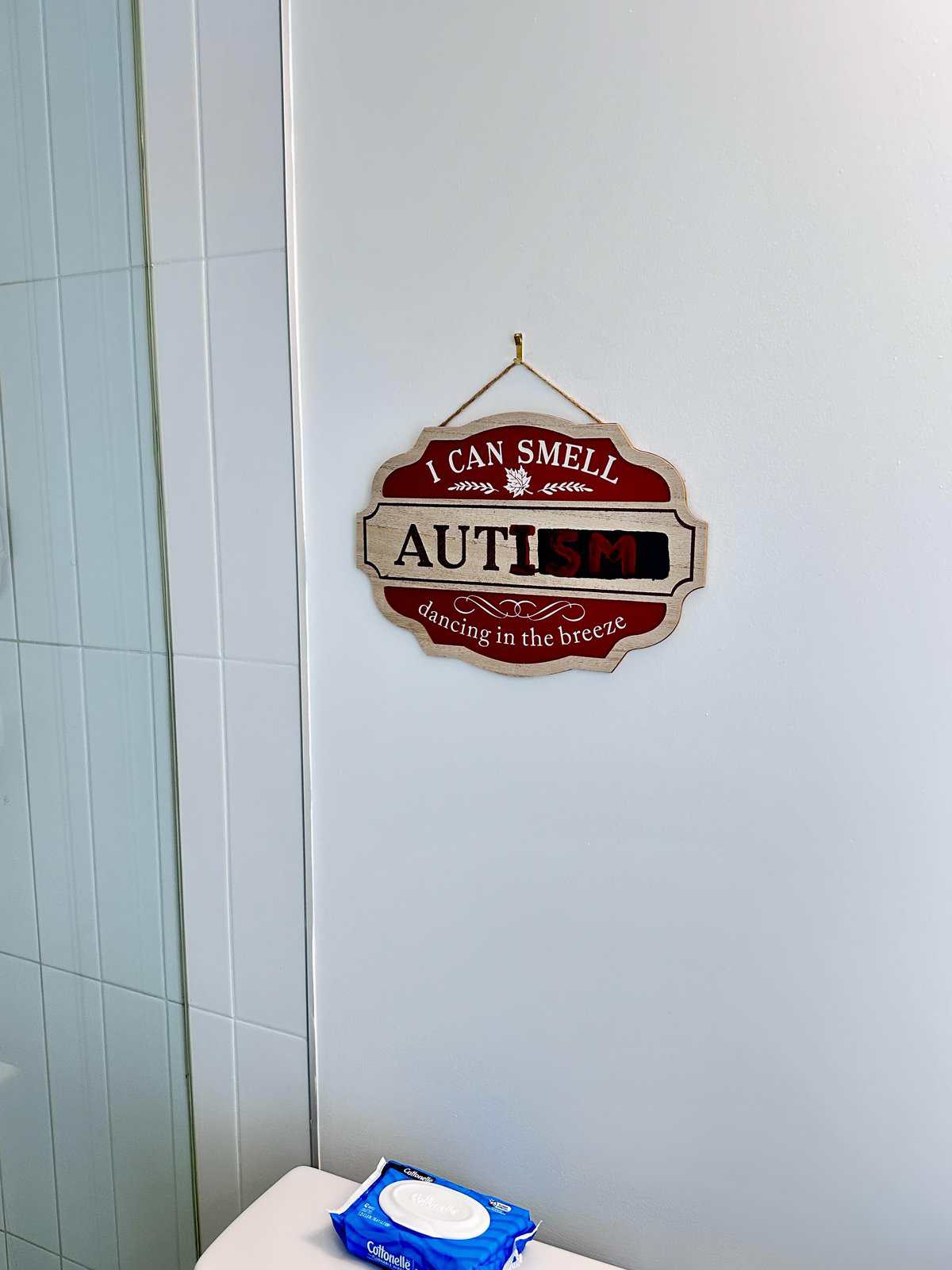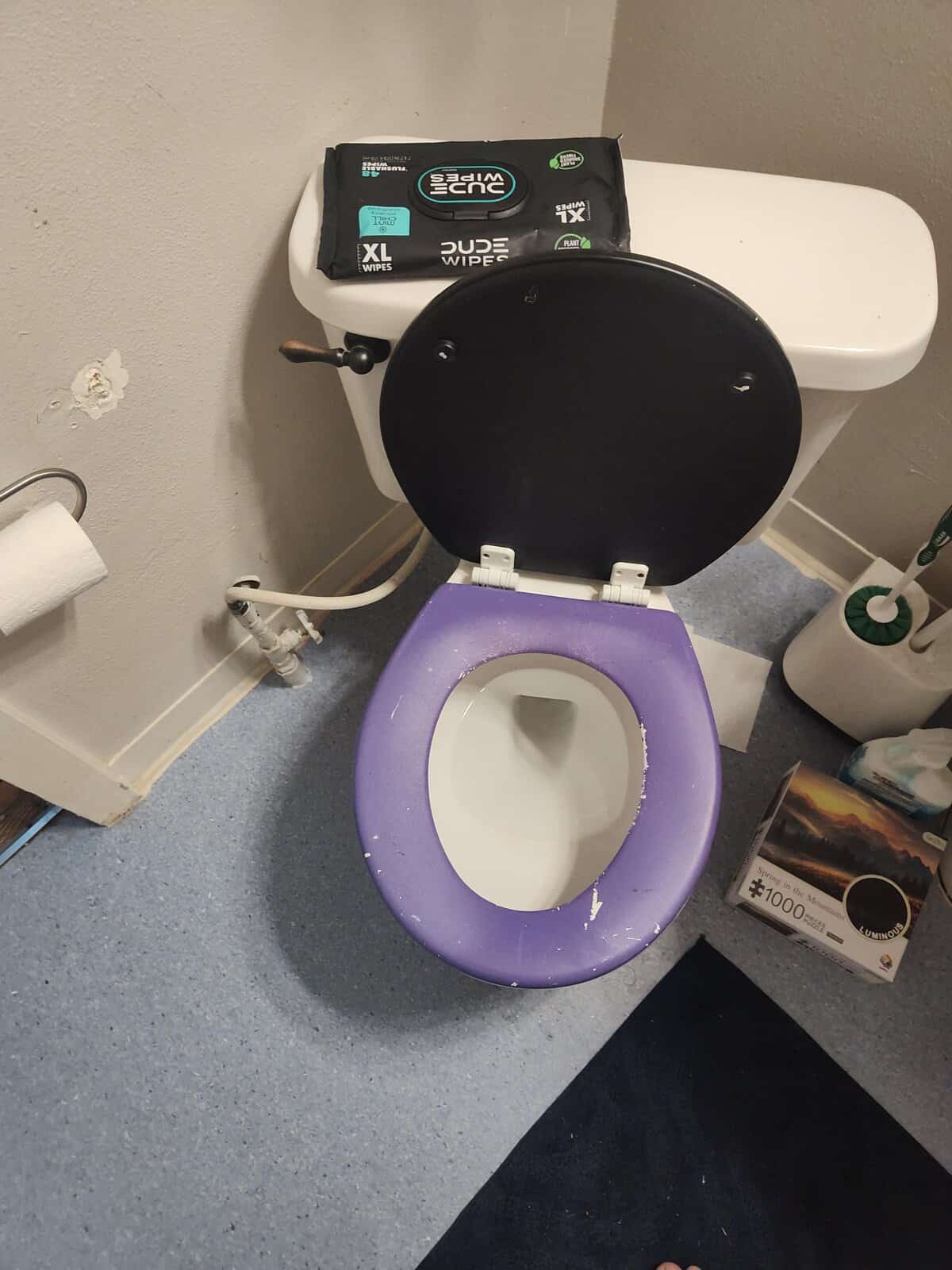 11. Roommate painted the toilet seat and lid I don’t know why.