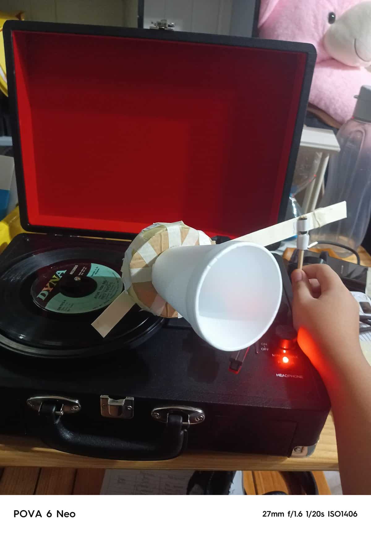 28. Grandma Phone Attachment for record player.