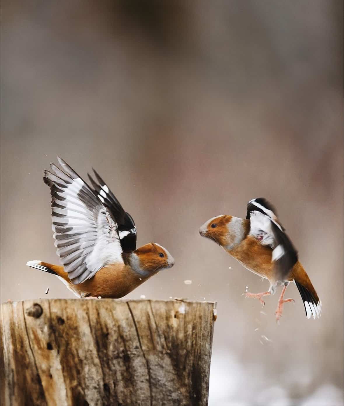 One fun artist who uses good old fashion Photoshop skill and their wits is Martin Bullock, creator of PixelatedAnimals. He expertly blends animals in one hilarious picture. The genuinely delight me every time I see them.
