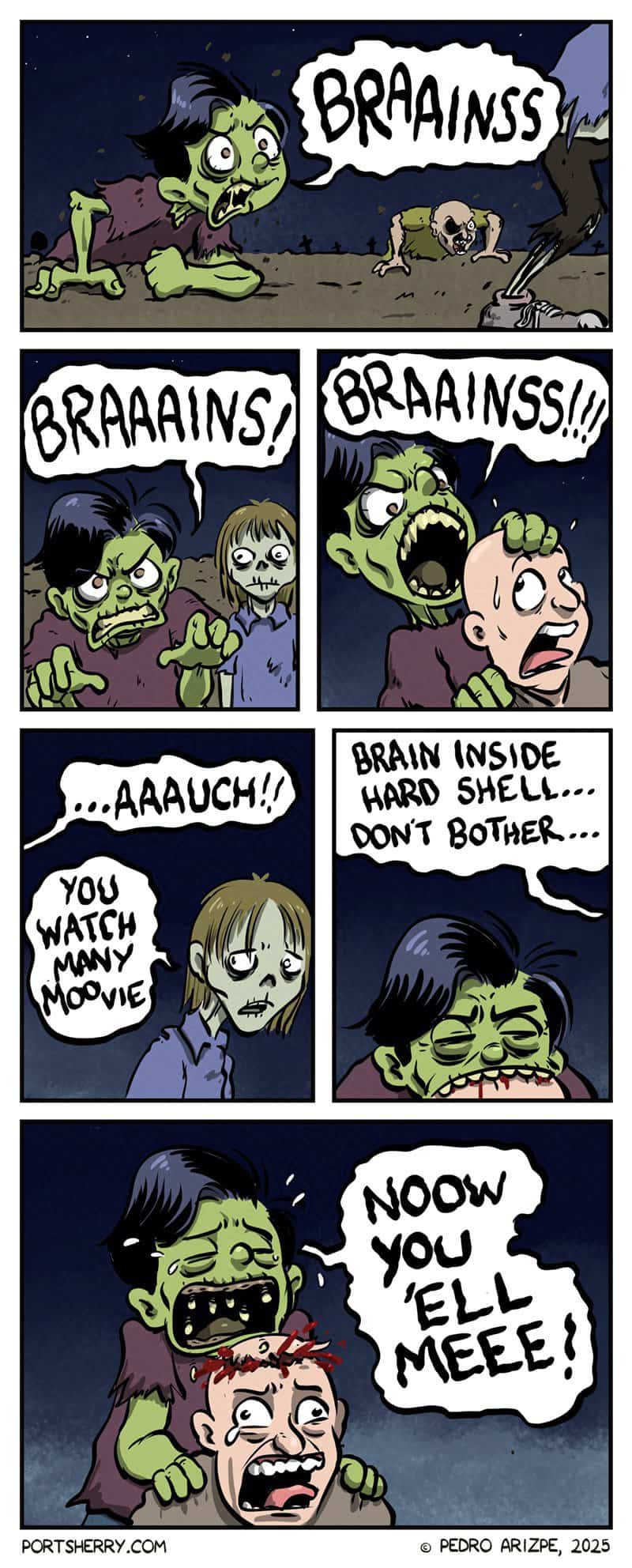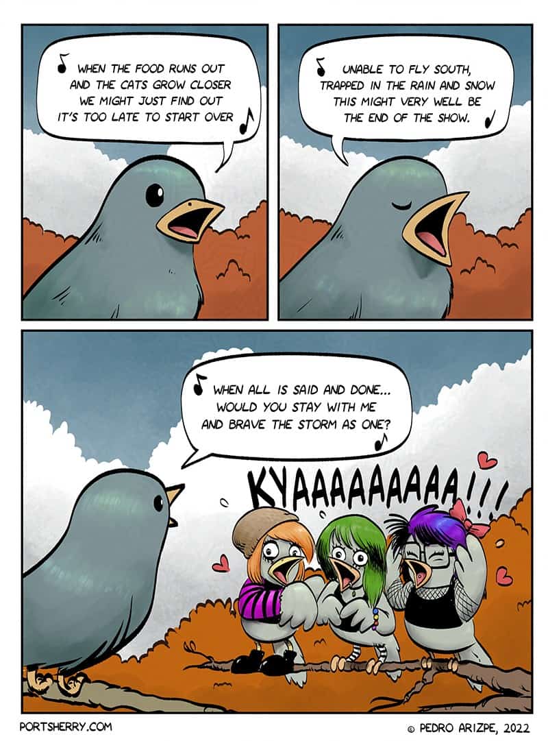 Port Sherry is a comic I keep coming back to. Cartoonist Pedro Arizpe is a fantastic artist and has the hilarious jokes to go with it. Sometimes his comics are silly, but often they a delightfully dark.