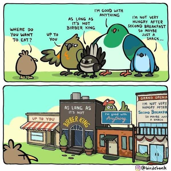 I don’t know why, but comics about birds acting like people just work. Birdchonk has mastered that mix of cute and existential, where every panel feels like a tweet about your life…but with feathers.