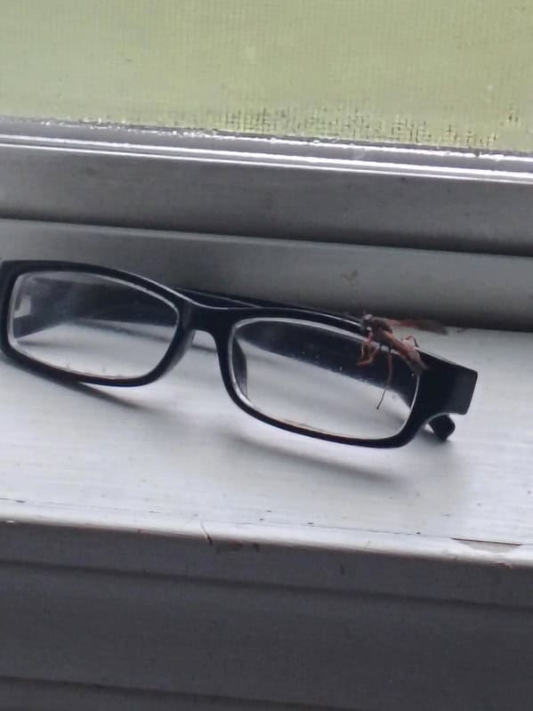 19. “Red wasp hanging out on my glasses after a shower . I’m -4.75 vision and I am at every disadvantage.”