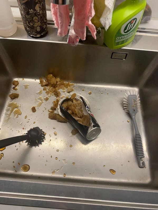17. “5:30 am, half asleep and dropped the instant coffee powder tin”