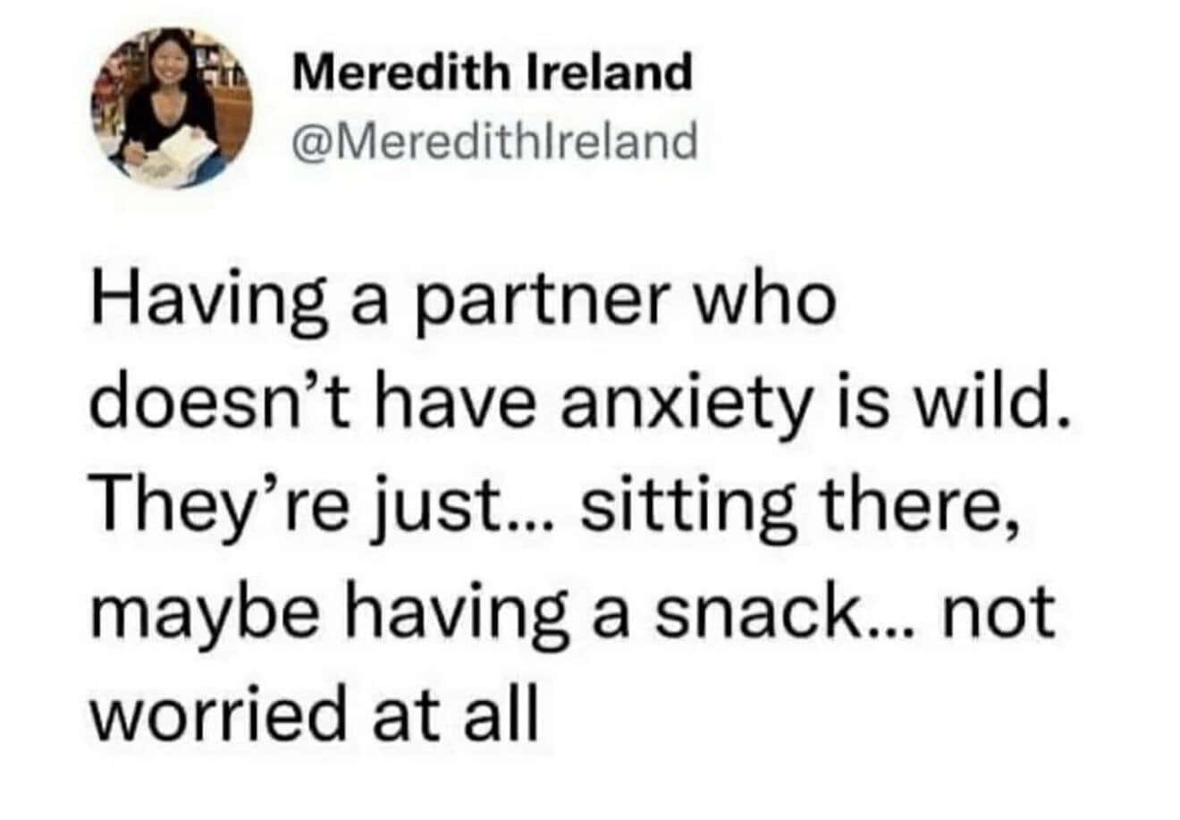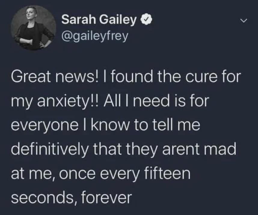 For everyone else, maybe just go to therapy, take your meds, and try your best to laugh with the community of other anxious people who just make funny memes about it.