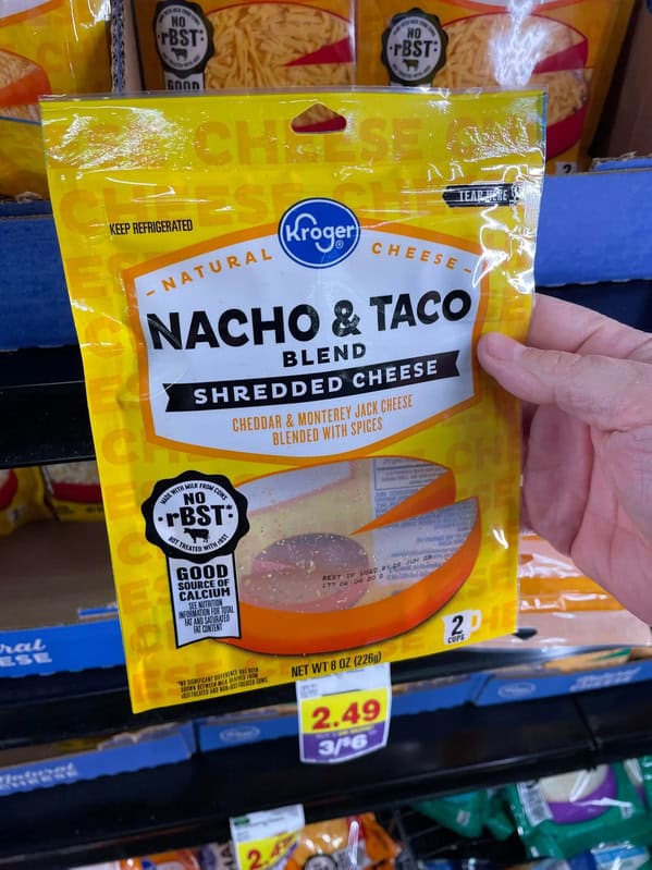 2. “Sealed empty bag of cheese at the grocery store”