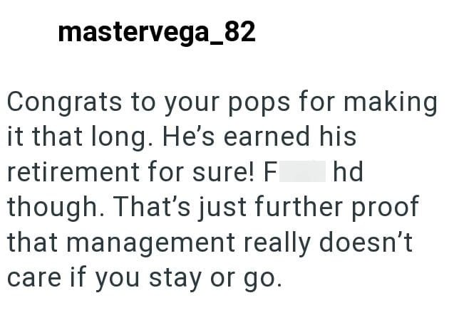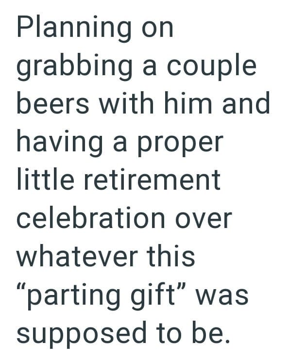 I’m not saying he should’ve gotten a gold watch or hefty bonus, but giving someone who dedicated a quarter of their life to working for you $5 worth of snacks on their way out is a slap in the face.