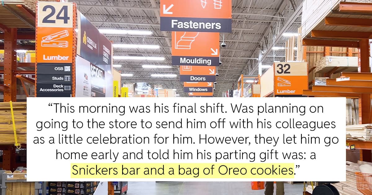 Home Depot Employee Retiring After 27 Year Receives A Snickers Bar And Oreos As His Only Retirement Gift