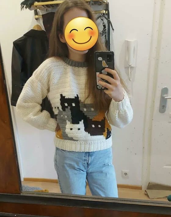 24. Finally Finished My Catghan Sweater ! And Yes I Ran Out Of White And Ended Up Making The Collar In Grey, But Tbh I Dont Hate It