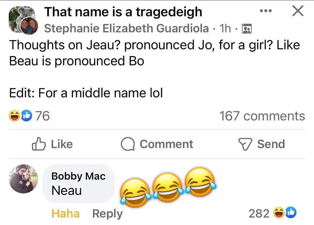 And while we shouldn’t laugh too hard (okay, maybe just a chuckle), let’s use these as a gentle reminder: Naming your offspring? Maybe run it by a couple of friends first. Because, let’s face it, we’ve all seen a “tragedeigh” and thought, “Oh, honey, no.”