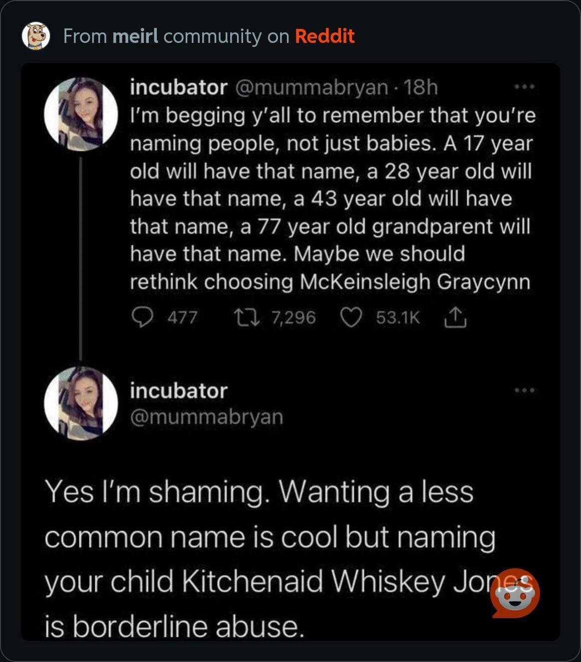 7. “Even the baby is upset about their name”