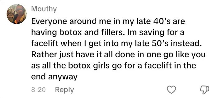 This woman’s amazing photos go all the way back to the 60s up until getting a facelift in her 70s. It’s a fascinating transition to watch.
