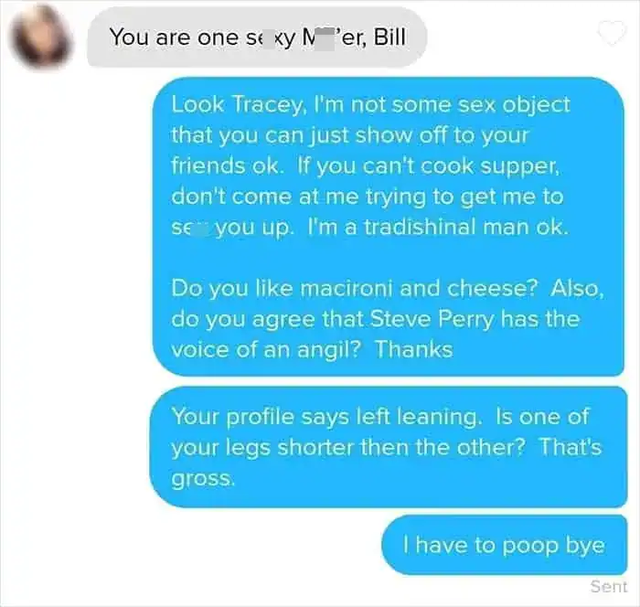 However, sometimes you come across a gem like Bill The Handyman. Bill’s Tinder profile is hilarious, but even funnier are the messages between him and a woman he matched with. Enjoy.