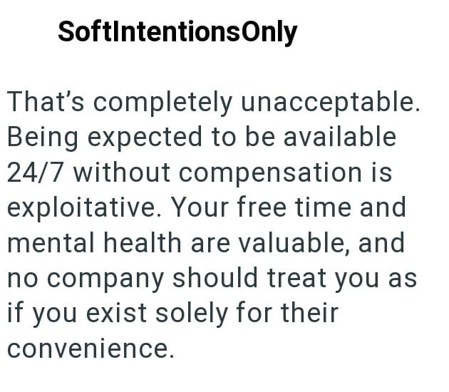 Management Insists On 24/7 Availability With No Extra Pay, Criticizes Employee For Lack Of Responsiveness