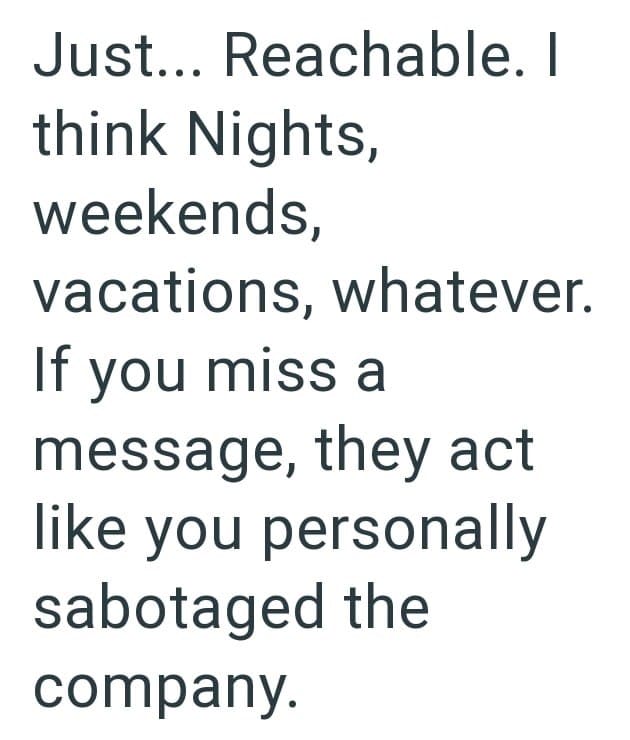 Well, the employee in this Reddit post has had enough. His managers expect everyone to give them 24/7 availability without giving anyone extra pay. I mean, even if they did that’s a big ask. But they aren’t even asking, they’re demanding.