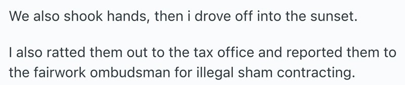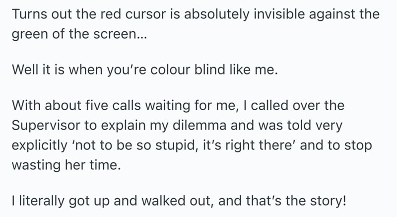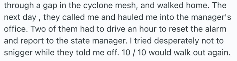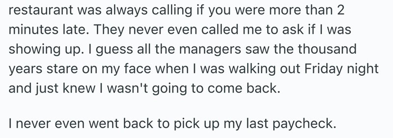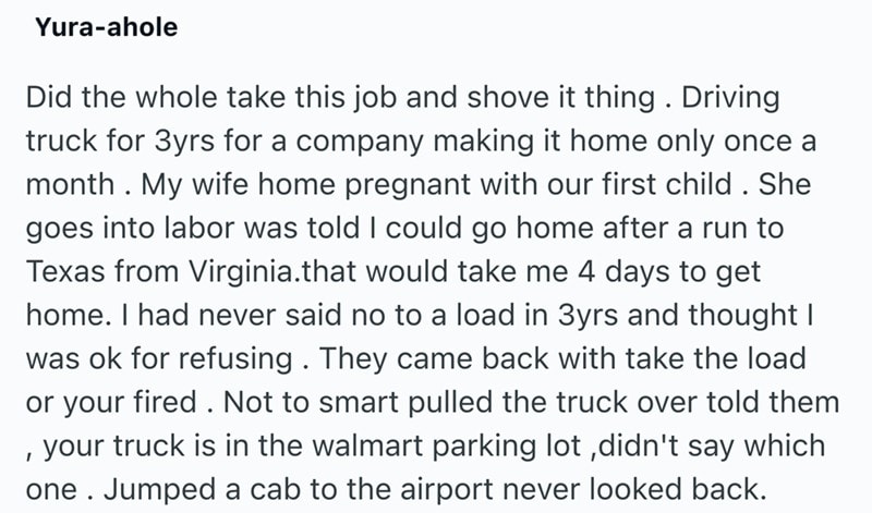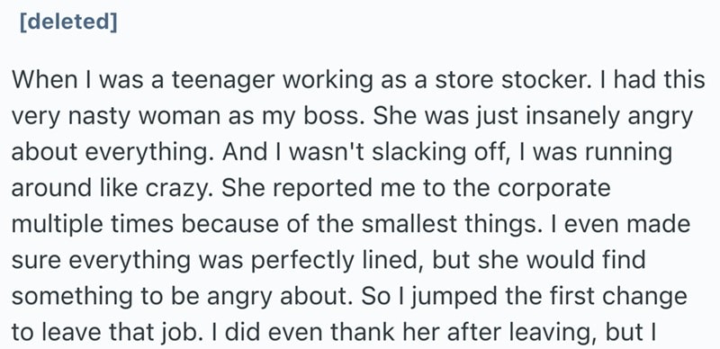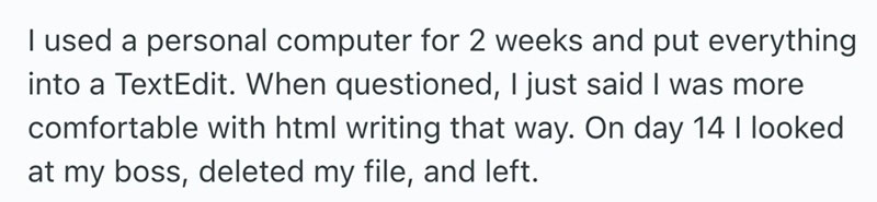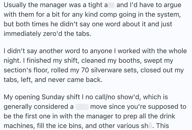 These storied from Reddit are all of the same vein. People who worked awful jobs and decided to walk out and never look back. A though most of us have had at least once in our lives.