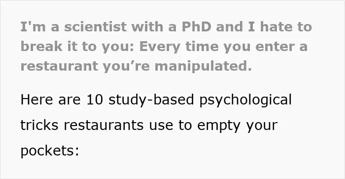 Data Scientist Shares 10 Crafty Psychological Tricks Restaurants Use To Get More Of Your Money