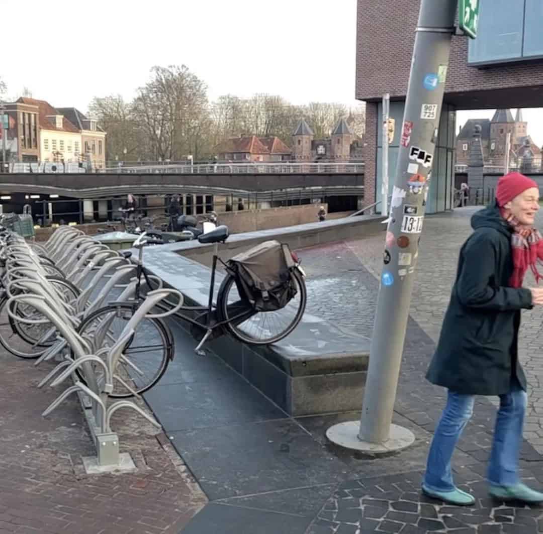 11. “This bike parking spot is placed right in front of a bench that requires you to raise your bike up to place it on the bench.”