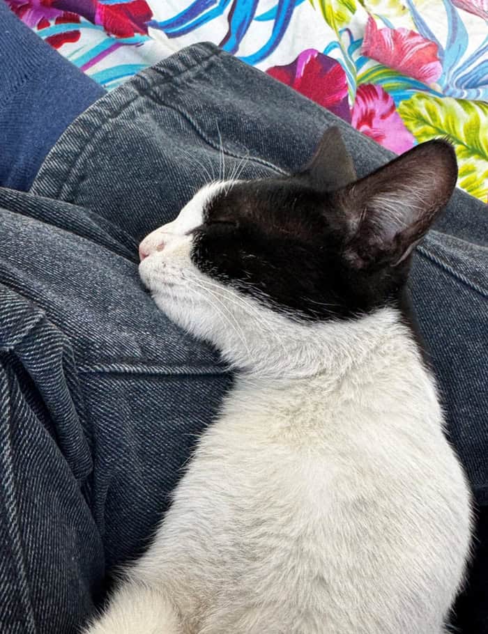 1. “Not my cat followed me home and slept on my lap all day long”