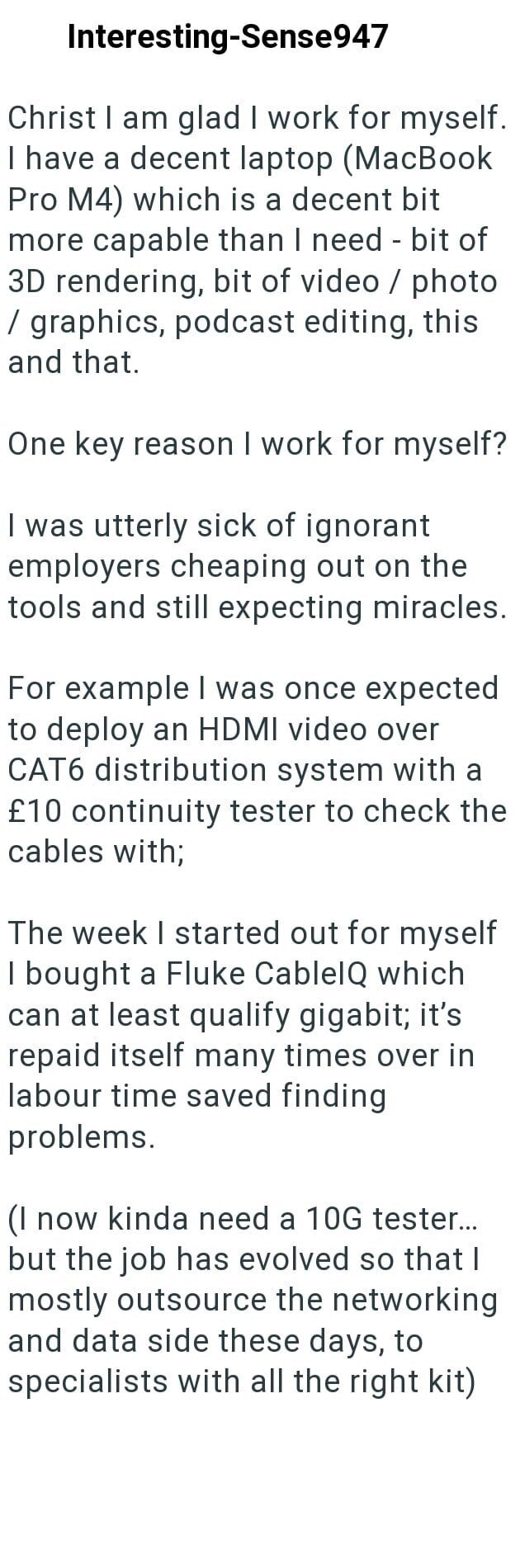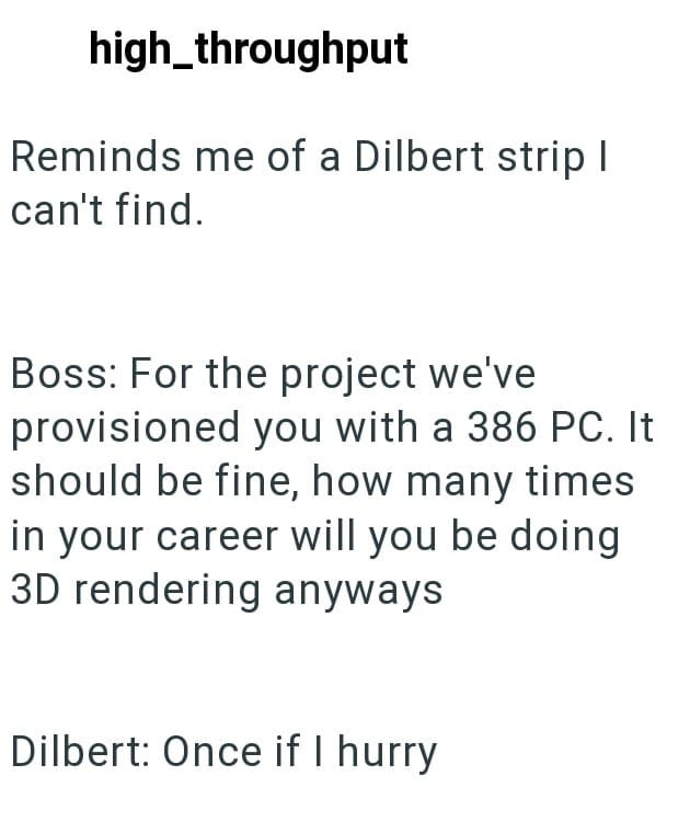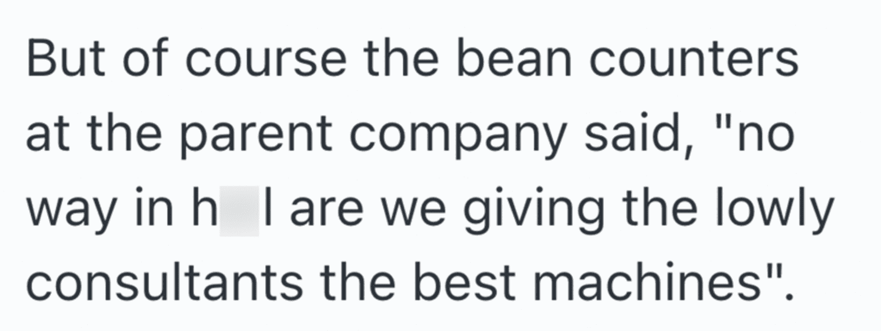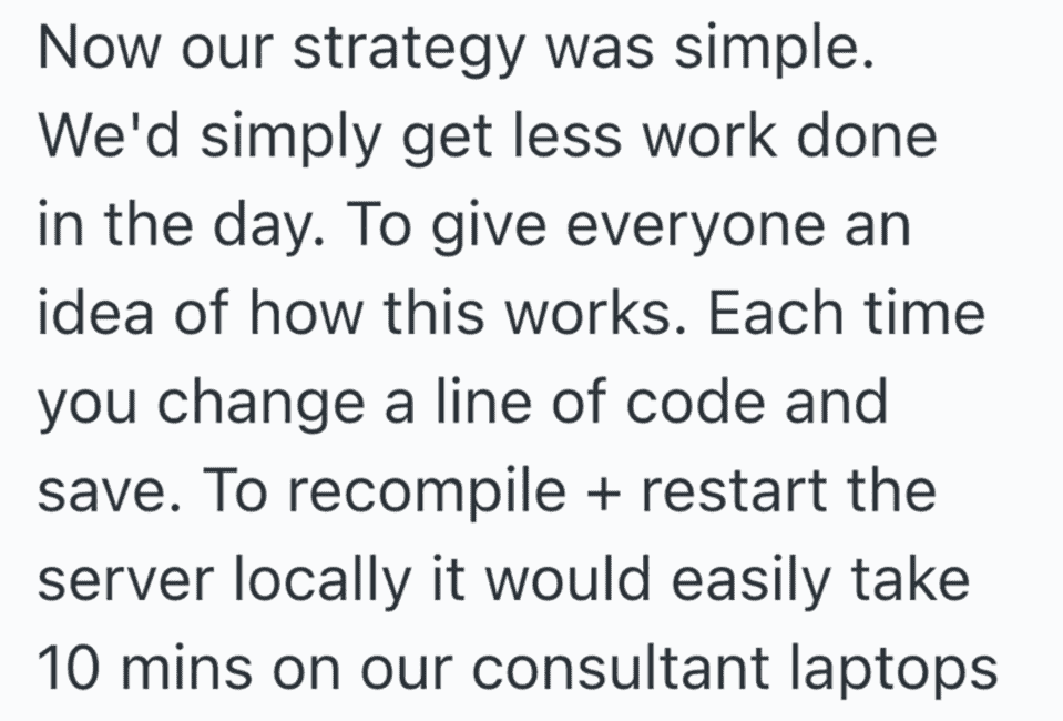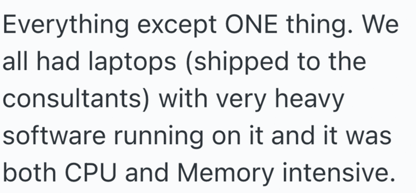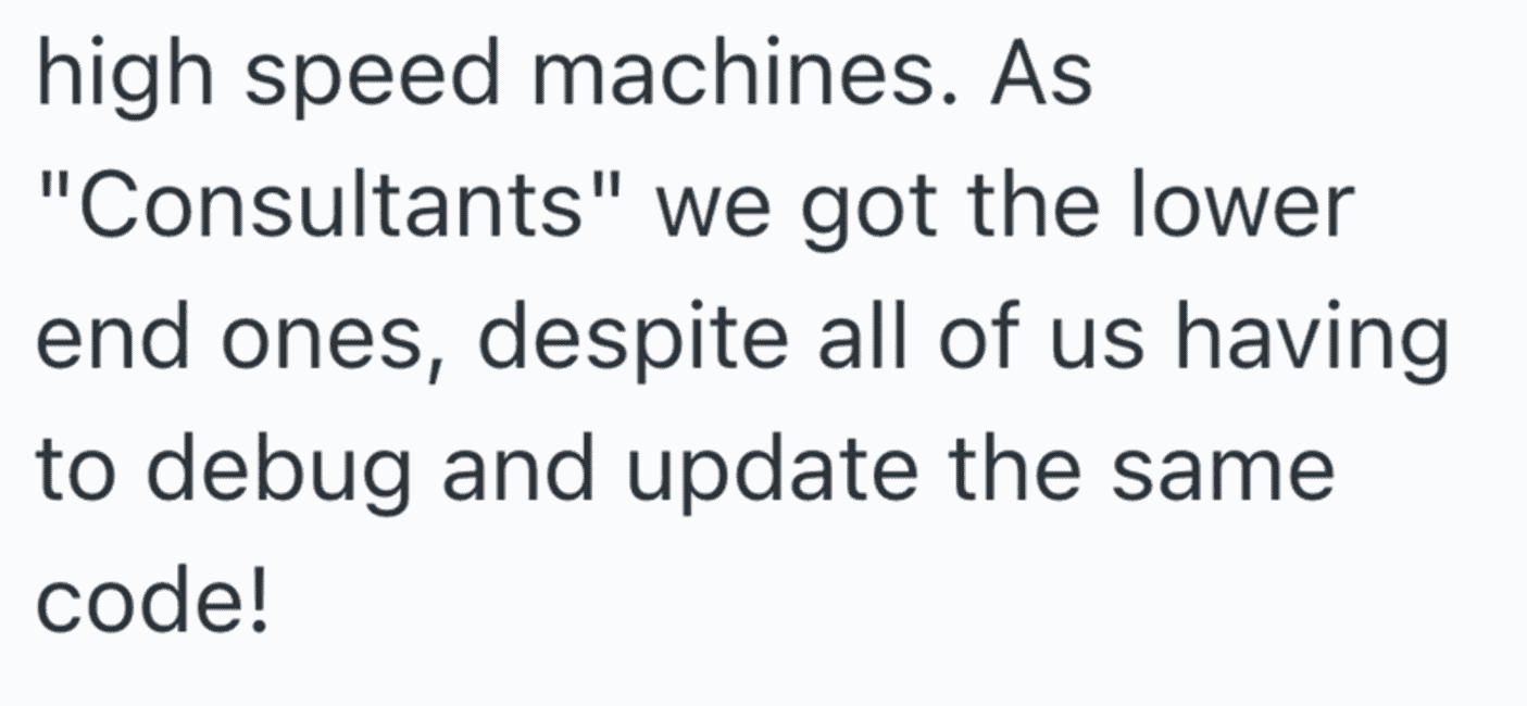 In this Reddit post a remote worker shares a story about his managers forcing employees to work on old, slow computers to do their work. Obviously things would go much faster is the computers had the proper processing power.