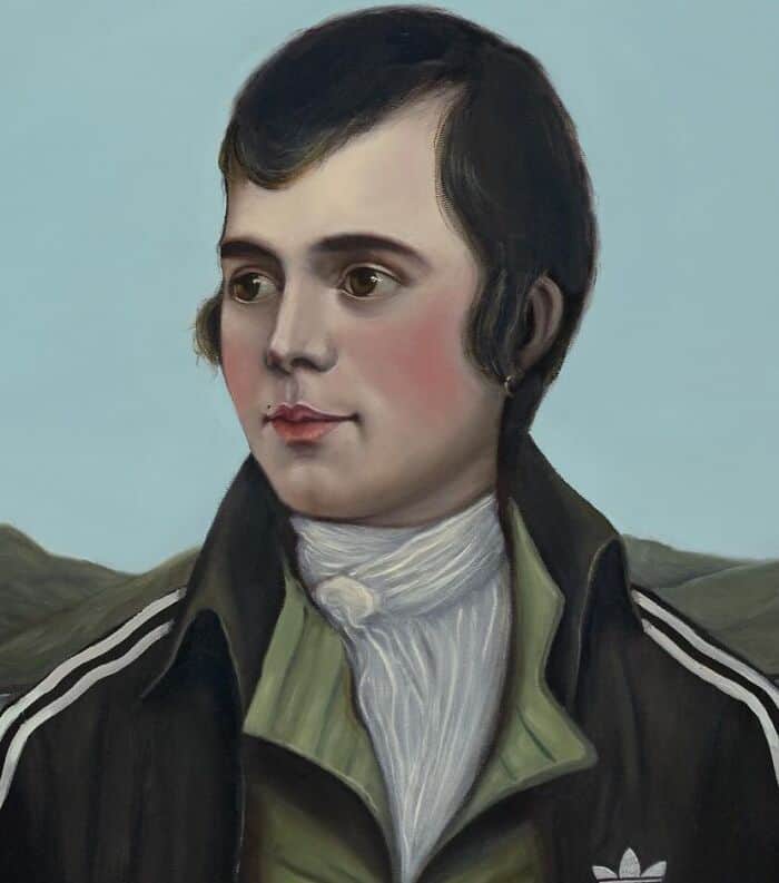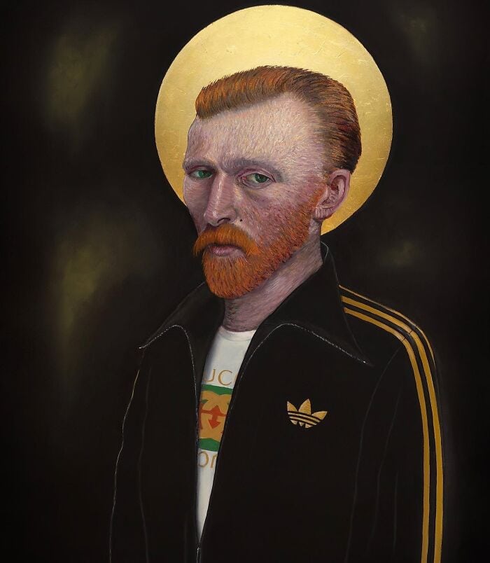 I love when artists take museum paintings and make them feel current. Ross Muir does exactly that. He takes classic portraits and reimagines them as modern people. Same poses. Same framing. But now they’re wearing hoodies, holding coffee, and looking like someone you’d actually meet.