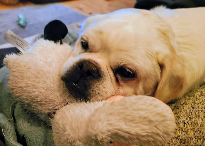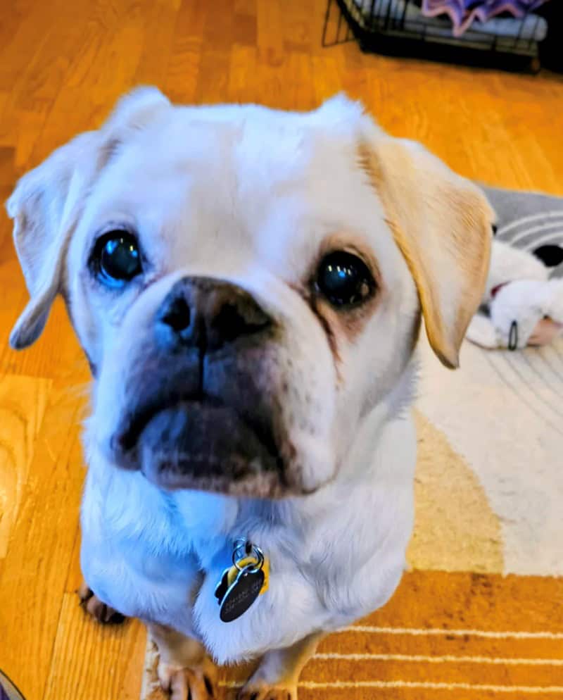 What she got was a 10-year-old puggle named Bixby, who is a perfect sweetheart.
